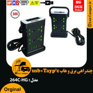 شارژر 3 پورت USB * 2 + Tayp'c * 1 روکار فست با کلید پاور