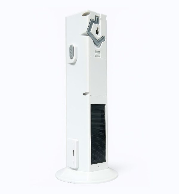 محصول دارای صفحه خورشیدی بوده و با نور خورشیدی باتری آن را شارژ می کند.