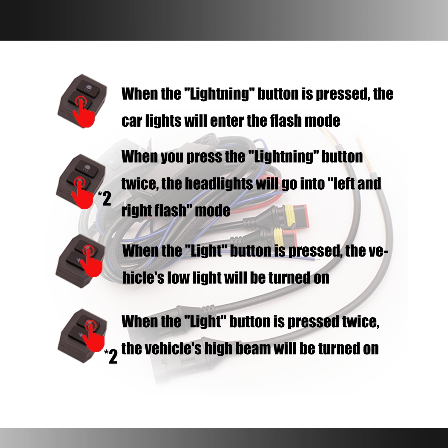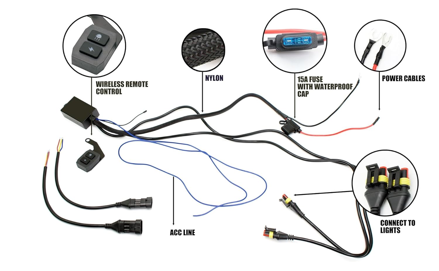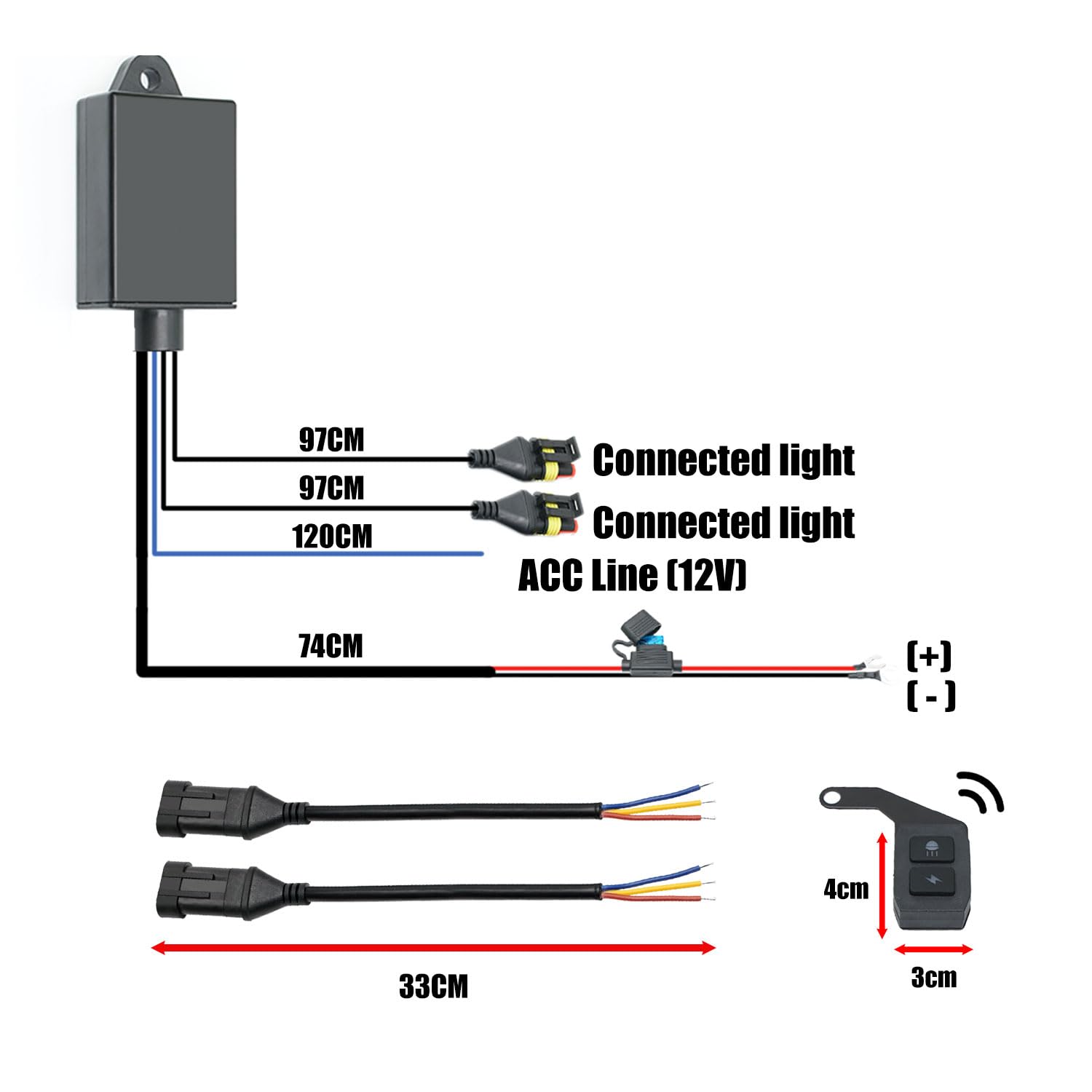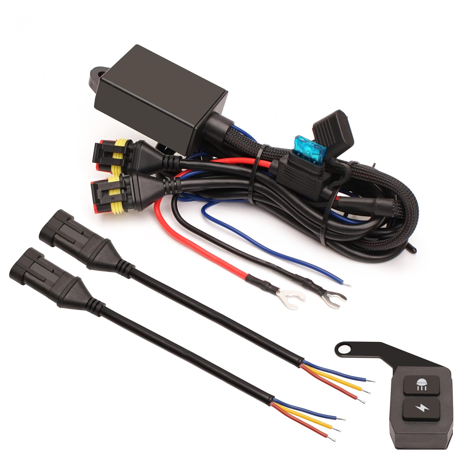 - ایمنی خود را در جاده با این کیت سیم کشی با نور بالا که کنترل بی سیم چراغ های جلوی موتورسیکلت شما را ارائه می دهد، افزایش دهید.