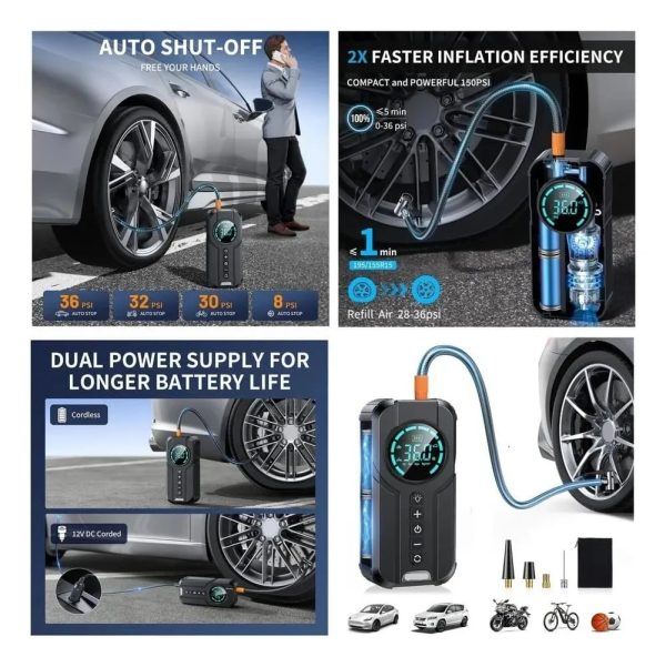 خودرو: روشن کردن سریع در مواقع اضطراری، باد کردن لاستیک و استفاده از چراغ قوه در تاریکی