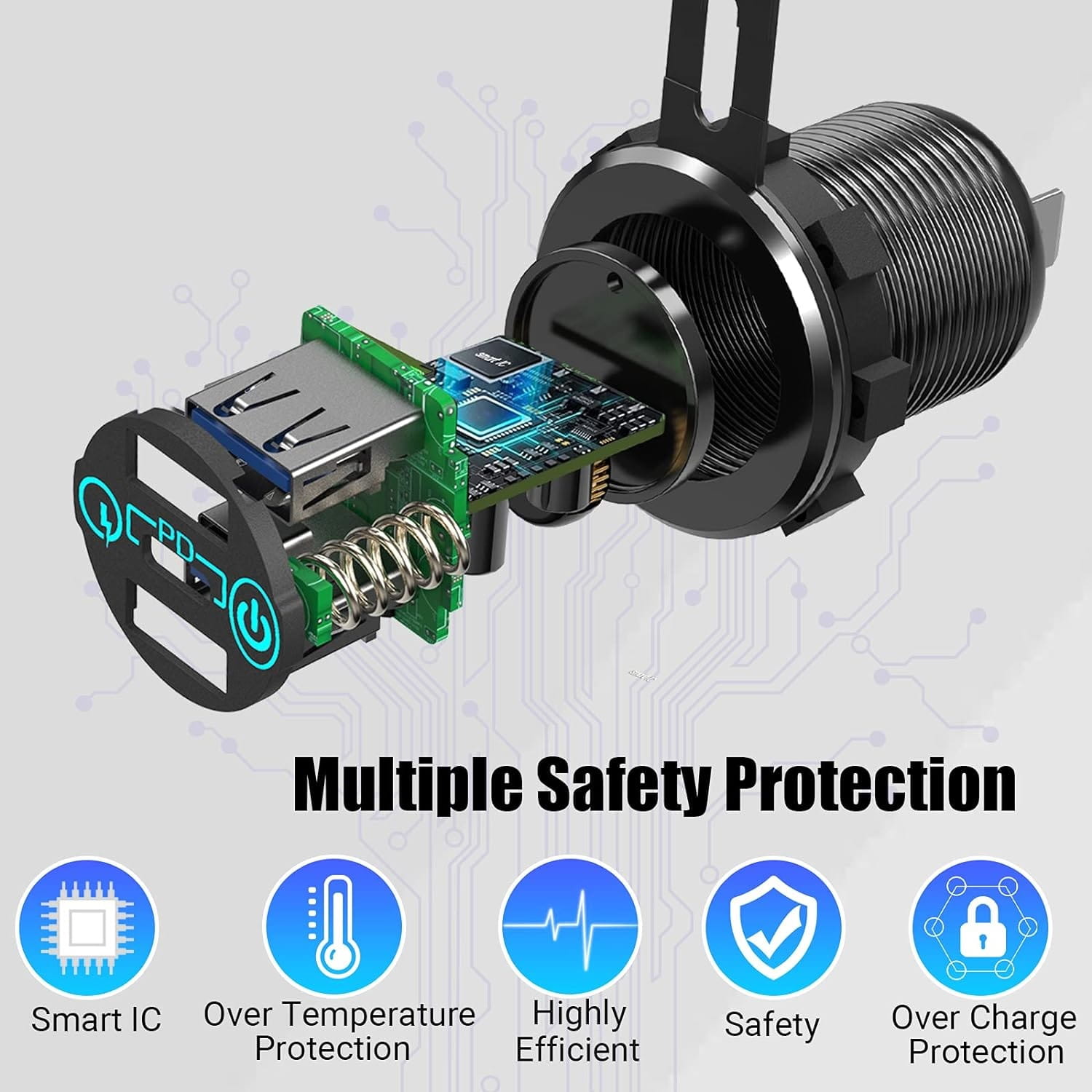 دارای یک پورت USB 3A فست شارژ و یک پورت Tayp-C 3A فست شارژر