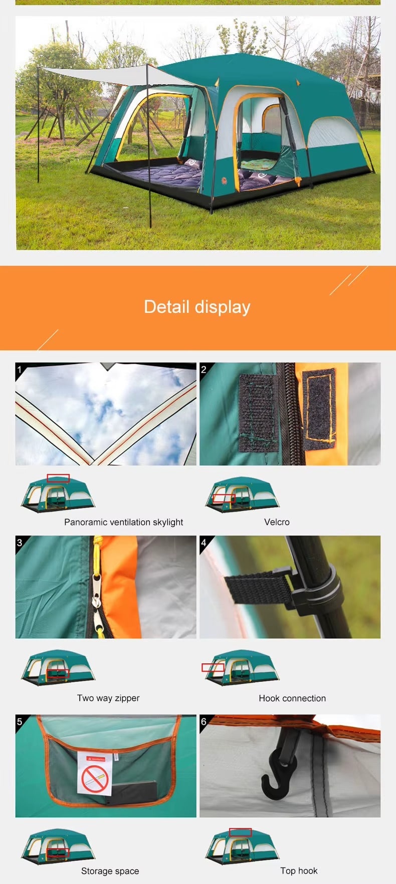 - نصب آسان : طراحی ساده و کاربرپسند این چادر، امکان نصب سریع و آسان را فراهم میکند و حتی افراد مبتدی هم میتوانند به سادگی آن را برپا کنند .